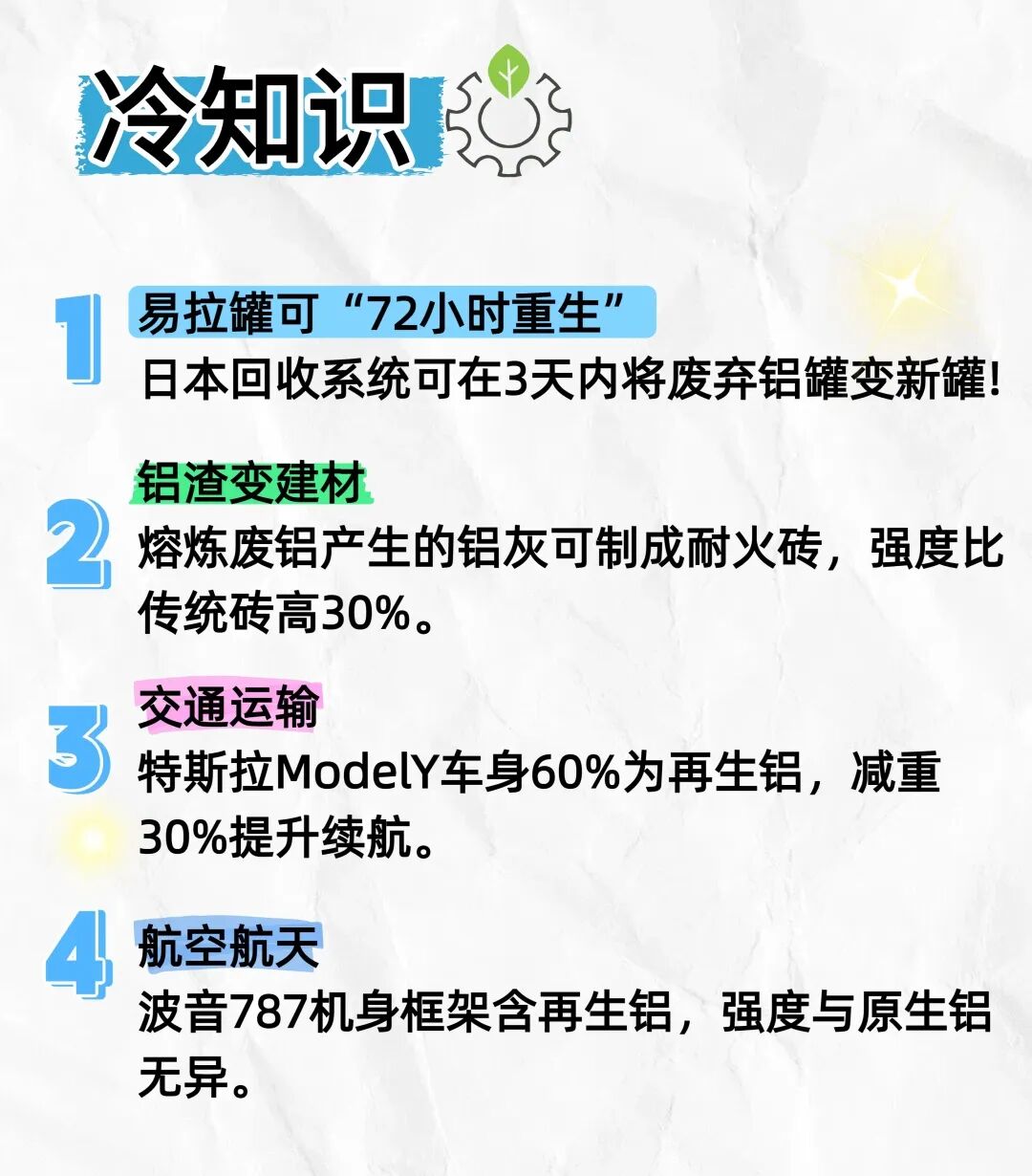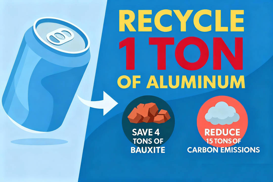 ♻️回收 1 吨废铝,能耗仅为生产新铝的 5%,可节约 约 4 吨铝土矿、减少 15 吨碳排放。